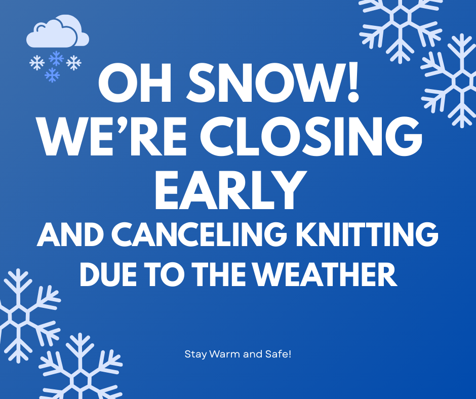 Knitting Cancelled & Office Closing Early The church office will close at 3 PM today, Tuesday, March 2. Knit & Sip will meet again on April 7.